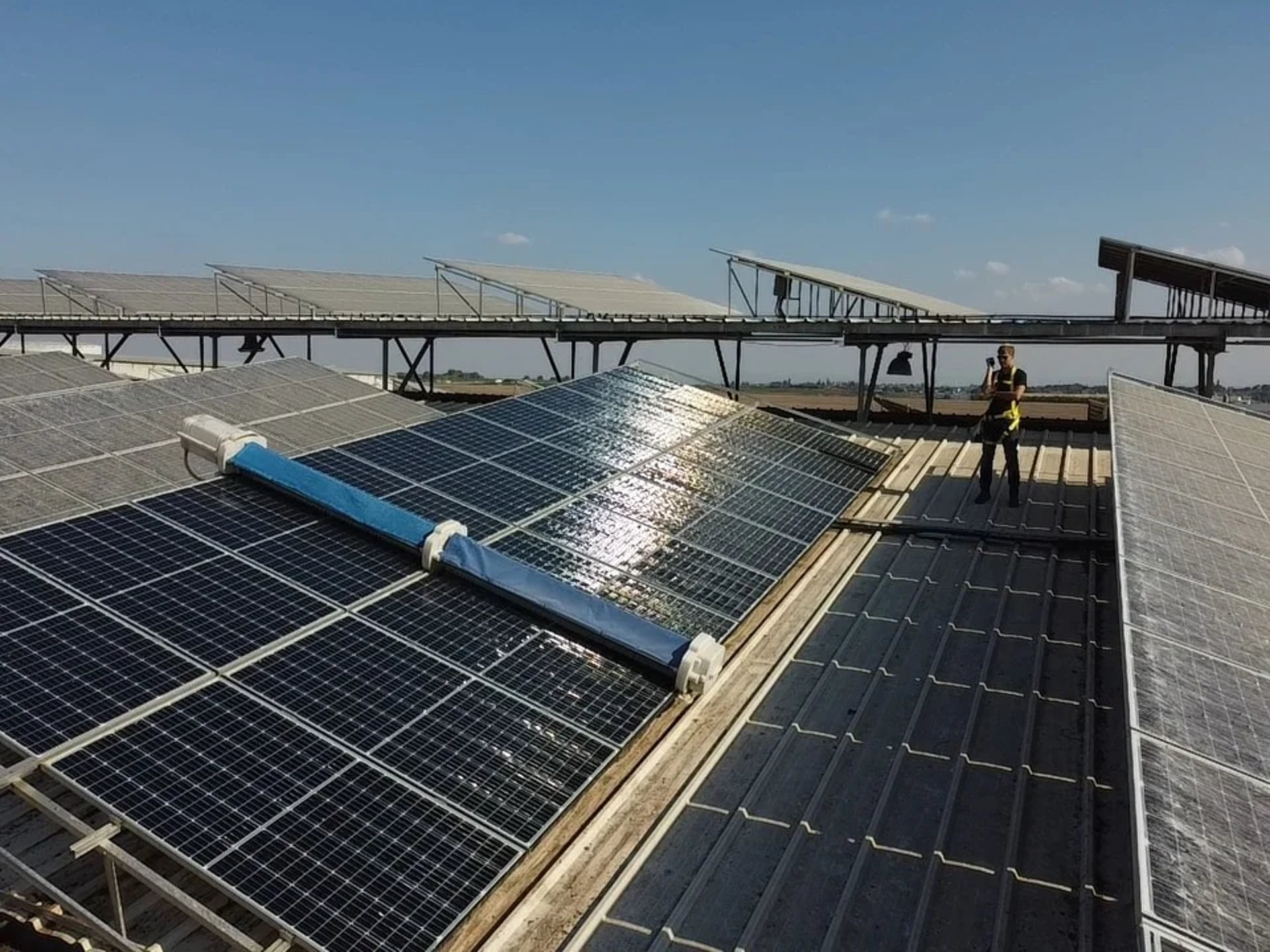 Solaris Hydrobotics Solution: Solaris’s robot is a self-driving cleaner that traverses the panel rows at night, using a patented water-driven motor to move and scrub the panels solarishydrobotics.com. Unlike conventional cleaners, it requires no external electricity – pressurized water powers its movement and brush rotation. This design eliminates heavy rails or power cables and keeps operating costs low. The robot can clean on a schedule (e.g. nightly) or on-demand, and it’s built to withstand outdoor conditions for up to 10 years of servic. By using low-pressure water spray, it gently removes dust without scratching glass and uses minimal water compared to high-pressure washing. Crucially, the system’s autonomous operation means no technicians need to climb on roofs or utility structures, improving safety and avoiding labor risks. With this setup in place, Solaris and the site owner kicked off the pilot to measure performance improvements and financial benefits.